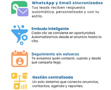 Con MiClinic.Pro, tus campañas, formularios, WhatsApp y correo electrónico se integran en un mismo flujo automatizado.