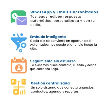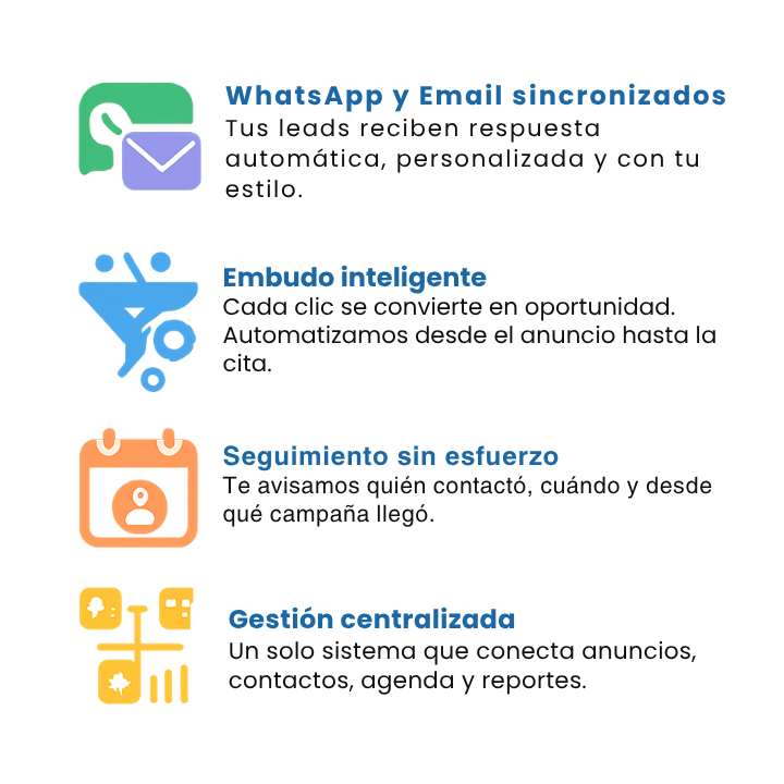 Con MiClinic.Pro, tus campañas, formularios, WhatsApp y correo electrónico se integran en un mismo flujo automatizado.